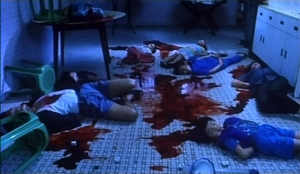 Co se týče toho násilí, záleží na tom, jak jste jako diváci otrlí, co máte nakoukáno a co jste ještě schopni strávit. Osobně si myslím, až na jeden, dva opravdu ostré momenty, že to tady není zas tak žhavé, asiati umějí mnohem horší prasárny. Kamera vždycky milosrdně uhne, když se ostří sekáčku právě boří do lidského těla, nebo scénu zabírá z úhlu, který znemožňuje vidět zločincův akt zcela názorně. Tenhle „kamerový šizunk“ se děje i při divácky nepříjemném znásilnění jídelními hůlkami, a ke konci se už překračují divácké konvence úplně, kdy se vraždí bez ohledu na věk obětí. Ano, vraždí se tu i malé děti, z nichž jedno se před smrtí počůrá, sekáček tu řádí jako zběsilý, šplíchance krve stříkají do tváře psychotického Wonga, no, není to hezké pokoukání. Ale jak říkám, kamera to milosrdně šidí, takže dopad na nepřipraveného diváka není tak nepříjemný. Divácky nekomfortní je to, co tomu předchází. Když se Wong přibližuje se sekáčkem v ruce ke zbývajícím čtyřem malým holčičkám, klečícím na podlaze, je to silný moment. Holčičky v tušení smrti pláčou marně, Wong je nemilosrdný a nelítostný, podřeže je všechny, naporcuje a nepoužité zbytky vyhodí. Wong se tu opravdu stává skutečným iracionálním zlem, ale ne jako sérioví vrazi, kteří své činy dopředu promýšlí. Wong jedná zcela impulzivně, bez předem připraveného plánu, nedomýšlí důsledky, je jak vzteklá nelítostná bestie, která hryže kolem sebe, kdykoliv ucítí sebemenší ohrožení její existence.
