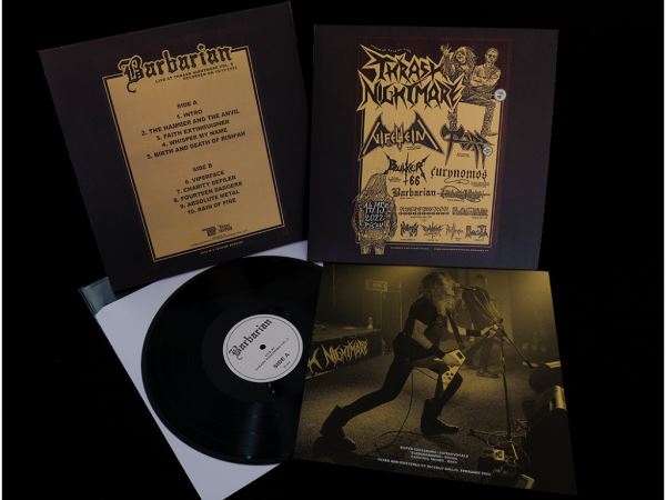 Začnu od vydavatele. Po přerušení činnosti cca v roce 2018 následoval převod distra na nizozemské Hammerheart Records a poté hibernace. K probuzení Doomentia došlo v roce 2022 ve spojitosti s realizací poslední řadovky LAHAR. Od té doby se opět začaly dít věci. Za zmínku stojí třeba vinylový box posledního alba FORGOTTEN SILENCE a honosná shaped picture edice EP „Om Kali Maha Kali“ od CULT OF FIRE. Za dosavadní vrchol nové éry vydavatelství však považuji počin vztahující se právě k výše zmíněnému festivalu, konkrétně vydání třech autonomních koncertních nahrávek na trojici vinylů, jejichž zpracování spolu krásně ladí a zároveň ctí ducha Thrash Nightmare. Matně černou obálku zdobí festivalový plakát, decentně doladěný barvou odlišující jednotlivá „lajfka“. Stylový insert je samozřejmostí. Vybrané protagonisty pak krom hřbetního popisku uvádí jen logo na samolepce, nalepené na ochranný igelitový obal. Společně s uvedením příslušné akce se zde anoncuje tou kterou kapelou schválený – „official bootleg recording“ – záznam. Vše doplňuje hrdá poznámka „Made in Czech Republic“. K tomu není co dodat.