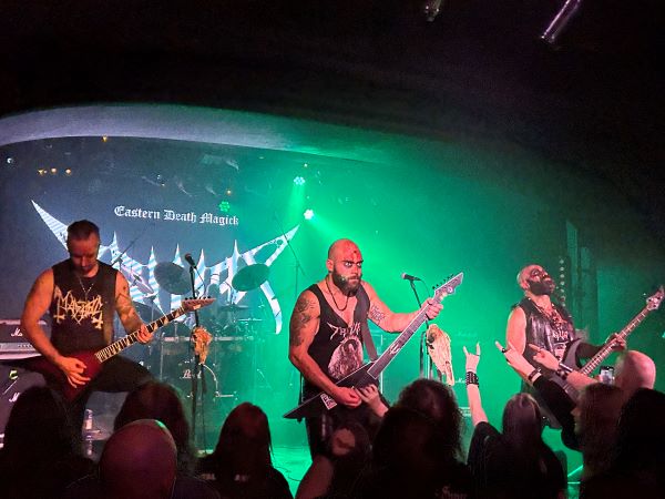 Každopádně i TRIVAX patří k emigrantům a kapelník Shayan jejich činnost obnovil v Birminghamu v roce 2011 poté, co během koncertu v jedné z teheránských středních škol studenti zapálili hlediště (nezjistil jsem, jestli to bylo rozjařeností návštěvníků, nebo naopak na protest proti tomu, co se na pódiu dělo). Každopádně pražský koncert proběhl ve výrazně klidnější a normálnější atmosféře. Shayan byl charismatický, hecoval publikum, pobíhal po pódiu, šklebil se a zejména v disciplíně koulení zlýma očíma byl nepřekonatelný. Hudba je solidní, trochu načichlá thrashem, i když nejde o nic novátorského. Překvapením pro mě byla malá návštěvnost, kdy při mém příchodu klub zel doslova prázdnotou. Naštěstí po začátku setu se – zřejmě ze všech možných děr – začali „satanisti“ vylézat, takže to nakonec odhadem vypadalo na nějakou stovku křepčících.