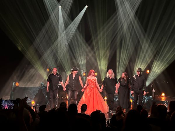 Pro připomenutí – AURI založil klávesista Tuomas Holopainen jako svou bokovku v roce 2017 a vedle něj v nich účinkují i další lidé z NIGHTWISH jako Troy Donockley (kytary, flétny, zpěv) a v roli námezdního bicmana a perkusisty i Kai Hahto. Když Holopainen NIGHTWISH před třiceti lety zakládal, tak měl představu o akustické skvadře, která by dělala komorní bardskou hudbu. Měsíc, vytí vlků, vodopád, útesy. Žádný metal, ale folk a náladovky. Kytara, flétny, piano a k tomu ženský hlas a tohle bylo cítit i na prvním albu „Angels Fall First“ (1997). Postupně Finové přitvrdili, ale Holopainena to stále táhlo k temnému melancholickému folku. Ve velkolepé symfonické formě pak své nemetalové ambice klávesák realizoval na sólovce „Music Inspired by the Life and Times of Scrooge“ (2014), jakémsi soundtracku ke komiksu o Strýčku Skrblíkovi. Už zde ho doprovázeli Donockley a v roli zpěvačky i budoucí manželka Johanna Kurkela a právě někde tady se rodí základ pozdějších AURI. Za další čtyři roky byla na světě první stejnojmenná deska a další dvě řadovky následovaly v roce 2021 a letos. Před pár týdny jsem přemýšlel, že se poslední z této trojice pověnuju v samostatné recenzi, ale nakonec jsem nechal vše jen na report z koncertu. „III – Candles & Beginnings“ mi nepřijde špatná, ale ze všech tří fošen asi nejslabší. Stala se každopádně záminkou pro vůbec první turné a Praha byla naštěstí jednou ze zastávek, takže jsem se nemusel trmácet někam za hranice, což bych asi učinil. Protože AURI jsem chtěl vidět…