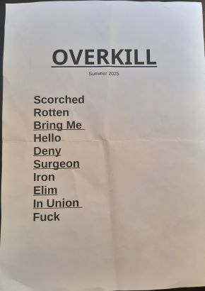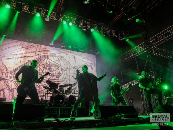 Americké OVERKILL jsem sice nikdy neviděl odehrát byť jen průměrný koncert, ale co se rozpoutalo právě letos na Brutale, nemělo nejen v rámci poctivého thrashingu obdoby, ale přesahovalo už tak vysoko nastavenou laťku. OVERKILL totiž potvrzují, že jsou jednou z úplně nejlepších koncertních kapel v celosvětovém metalovém měřítku. Vytaženou basu už znovu krotí uzdravený D.D.Verni, Bobby „Blitz“ Ellsworth je tradičně generátorem energie a chrličem slov, tak trochu připomínající barvou hlasu Uda Dirkschneidera, nicméně parádním manévrem se ukazuje účast nového bicmana Jeramie Klinga, jenž koncerty OVERKILL dnes pohání v obrovském nasazení a navazuje tak na práci svých předchůdců Rona Lipnického a Jasona Bittnera. Kam na ty skvělé bubeníky OVERKILL pořád chodí? V neposlední řadě prvotřídní je i kytarový tandem Dave Linsk/Derek Tailer, který zde přispívá značnou měrou znovu k skvělému koncertnímu výsledku. V Josefově si kapela střihla průřezový výlet do historie a tak nechyběly legendární vály jako „Rotten To The Core“, „Hello From The Gutter“, „Deny The Cross“, „In Union We Stand“ nebo „Elimination“, novější část tvorby naopak reprezentují věci typu „Ironbound“ a několik zářezů z poslední řadovky „Scorched“. Pod pódiem je totální nával, ale i tak se zde rozpoutává dokonale zběsilý circle pit. Výstup tradičně zakončuje punková zdravice „Fuck You“ a na place ani nemůže být fanouška zelené grupy, který by byl nespokojen.