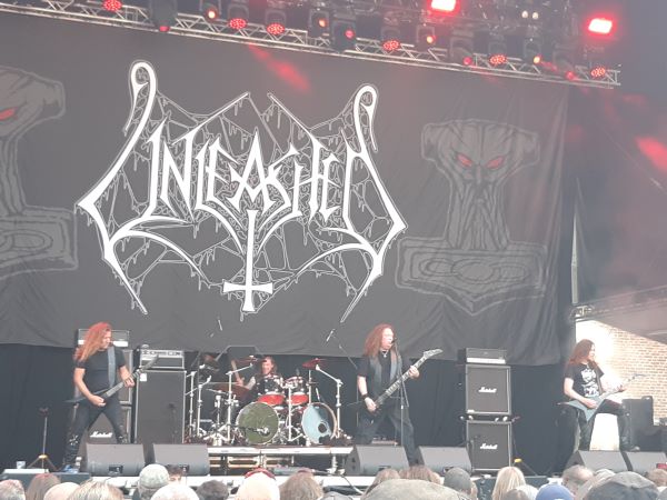 Švédští UNLEASHED mě v podstatě příliš nenadchli, oproti ostatním švédským deathovým formacím jejich bzučivé generace jsem je vždy považoval jako odrhovačkovou kapelu a svůj názor po tomto koncertu neměním. Jakoby šlo o death metal pro příznivce ŠKWORU, napadá mne během sledování jejich setu. Vystoupení příliš nepomáhá ne zrovna vyvážený zvuk, kdy to celé působí docela neprůrazným dojmem, a také sluníčko, které plochu před hlavními pódii doslova spaluje. Po páté skladbě to tak vzdávám.
