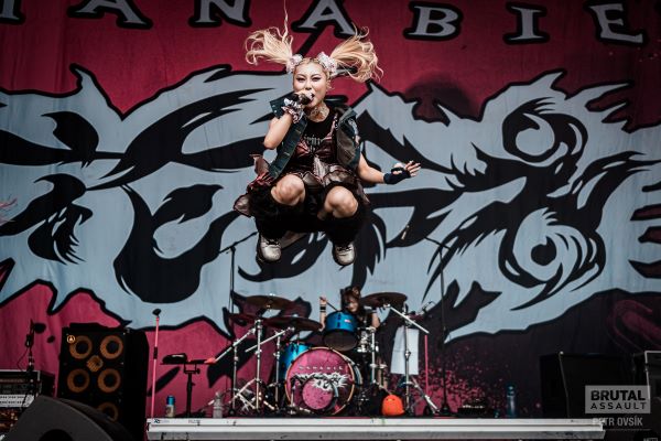 HANABIE je uskupení, na které jsem byl zvědavý už dlouho před festivalem. Kombinace metalu a rozverných japonských školaček mě z povahy věci nepřitahuje, ale tahle pětadvacetiletá děvčata vypadají víc jako kapela a míň jako produkt nahrávacích společností pod přísným dohledem diktátorských producentů, když hudbu a texty skládají kytaristka Matsuri a zpěvačka Yukina. Ta druhá se na pódiu i výborně pohybovala a ukazovala, že umí jak sladké tóny, tak solidní growl. O své hudbě mluví jako o harajuku-core, tedy jako o metalcore protknutém estetikou tokijského centra japonské módy. Fanouškovskou základnu mají i u nás, což dokládá vyprodaný koncert letos na podzim v Akropoli. Produkují chytlavé melodie, písničky jsou dobře udělané a na pódiu různě poskakují a zjevně je to baví. Jejich vystoupení však demonstrovalo problém řady dnešních kapel – jakmile jim vypadne počítač, tak bum bác a všechno končí, protože bez něj se svět zastaví. Tím neříkám, že neumějí hrát, to určitě ano, ale zjevně by to bez všech těch efektů znělo jinak a nedostálo vlastním požadavkům na bohatost zvuku. Nechci se otírat zrovna o HANABIE, kdyby se to stalo řekněme DIMMU BORGIR, tak to dopadne zjevně úplně stejně. Naproti tomu takoví EXHORDER nebo KERRY KING buď samply vůbec nepotřebujou, nebo by to přešli bez mrknutí oka. V případě HANABIE se čekalo dlouhé minuty a holky dělaly, co mohly, aby se mnohatisícihlavé publikum mezitím bavilo, ale bylo vidět, jak jsou z toho nervózní a jak je jim celá situace nepříjemná. Zvládli to se ctí a návštěvníci festivalu se jim to snažili co nejvíc ulehčit. Nakonec to bylo spíš dojemné, když jsme jim všichni přáli, aby se vše dalo do pořádku a po zbytek vystoupení se už nic nestalo…