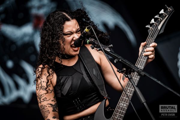 Mauglí: Kdo byl zvědav na řízný death metal servírovaný atraktivními dívkami, tak ten musel vyrazit do areálu víc jak hodinu před polednem, jelikož tyto měly start vypsán již na 11:05 hod. Rock či metal v podání něžného pohlaví bývala obecně vždy sázka do loterie, jelikož jejich produkce mívaly občas určité neduhy. Někdy to byla jen (pochopitelná) slabší razance, v horším případě však i nedostatečná instrumentální vybavenost, a to nejen u strunných nástrojů, ale zejména za bicí soupravou. To se však v žádném případě netýká brazilských divoženek CRYPTA, které vtrhly na stage jako utržené z řetězu a po celou dobu jim vyměřených 35ti minut nepolevily ani o píď. Zejména nasazení frontwomen Fernandy Lira bylo obdivuhodné - současně zvládala pódiovou show včetně drsňáckých grimas, prsty drtila basové struny a její growling, který střídala s drsným řevem, rezonoval celou pevností. Naprosto skvělá byla i její souputnice ještě z časů NERVOSA, drobná bubenice Luana Dametto, která s ledovým klidem ve tváři neustále hnala celý smrtonosný CRYPTA-stroj nekompromisně na zteč. A jelikož se nenechaly zahanbit ani velmi solidně hrající kytaristky, nebude zde při hodnocení potřeba žádného genderového přilepšování ba ani lehce přimhouřeného oka. Tahle polední porce CRYPTA death metalu byla totiž nanejvýš výživná, chutná a příjemně stravitelná. Nevěřil bych, že to napíšu, ale řada jiných mužských seskupení (i z letošního festivalového line-up) se jim může pouze závistivě dívat na záda a někteří i z velmi uctivé vzdálenosti. V mém privátním žebříčku tak CRYPTA nečekaně, ale zaslouženě, atakuje první desítku.