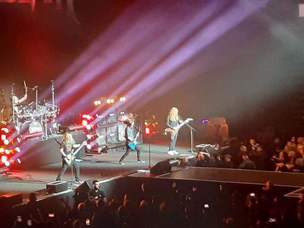 Stejně ale takové celkové poloprázdno vytváří dojem stísněnosti, jakési nepatřičnosti a že se něco nepovedlo a že se kapela naštve a koncert nebude stát za moc. Jakmile se ale do ztemnělého prostoru zařízl ostrý sekaný riff „Skin O´ My Teeth“ bylo jasné, že je vše v pořádku a že jsme na správném místě. Dave sice není už mnoho let v úplné hlasové pohodě, ale ruku na srdce – zrovna u jeho typu zpěvu je to vlastně úplně jedno. Tenhle na první poslech nepříjemný, ale po těch desítkách let již milovaný kvílivý štěkot k těmhle písním patří a těžko si u nich představit něco klasičtěji zpěvného. Zvuk byl celou dobu trochu zahuhlaný, ale nebyl moc nahlas, což jsem po výplachu DARK TRANQUILLITY o den dříve oceňoval. Metal nemusí být supernahlas, aby to mělo koule. Arénou klouzaly tóny „Wake Up Dead“, „Hangar 18“ nebo „Angry Again“ a já měl pocit, že mi v tuhle chvíli vlastně nic nechybí a ponořil jsem se do snění o minulosti téhle legendární kapely, která se to teď rozhodla bůhvíproč zabalit. Hodně lidí v publiku bylo možná v podobném rozpoložení a během přestávek mezi písněmi pravidelně své miláčky vyvolávali (aniž by dal Dave najevo brvou, že to zaznamenal). Výkony všech zúčastněných byly dle očekávání spolehlivé, ale jinak k tomu asi nemám co říct. Přestože jsem kdysi býval kytarista, tak bych upřímně nepoznal, jestli ta sóla hraje Teemu Mäntysaari, Kiko Loureiro nebo zda se náhodou nevrátil Marty Friedman. Mustaine se vždy obklopoval prvotřídními muzikanty a přijde mi, že minimálně od Friedmana hledal vždy to stylově příbuzné a tomuhle kudrnáčovi co nejvíc naklonované. Každopádně to šlapalo skvěle.