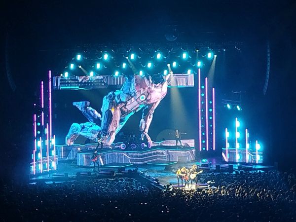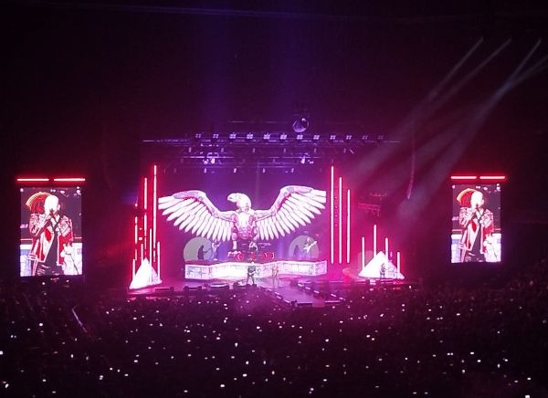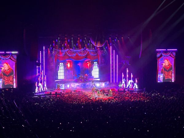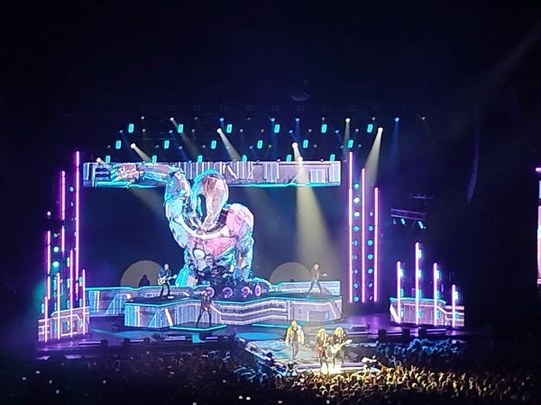V roce 2022 přivezli HELLOWEEN na stejné místo bombastickou show s velkou projekcí a bicími umístěnými uprostřed obří svítící dýně, ale k oslavě svých čtyřicátin ji ještě překonali. Člověk měl pocit, že není na koncertě, ale někde v Disneylandu, kde přechází od jedné atrakce ke druhé. Celkem osm led obrazovek, světýlka, ohně, konfety, 3D projekce, ohnivá stěna. Opravdový německý kabaret ve formě Gesamtkunstwerku. Nevím, kdy jsem viděl naposledy něco tak velkolepého. Každá píseň měla samozřejmě vlastní vizualizaci, z nichž u některých mě doslova padala čelist. Jako hned druhá byla do setlistu například zařazena třináctiminutovka „The King for a 1000 Years“. Neobvyklý a ambiciózní krok, ale i díky proměně arény do gotické katedrály s rotující rozetou nenudila ani na chvíli. I díky podobným vizuálním orgiím jsem se bavil i u těch písní, které doma se zívnutím přeskakuju. Vystoupení trvalo dvě a čtvrt hodiny a uteklo jako voda, ani náznak nudy. Hrálo se hodně z osvědčených desek z osmdesátých let a pak tu a tam něco z toho a něco z onoho. Neztratila se silná novinka, kde třeba Gerstnerova „Universe“ nebo Derisova „A Little is a Little Too Much“ už znějí jako moderní klasiky, které by se mohly v repertoáru udržet i do budoucna. Sympaticky působily i „komické“ vložky dua Derris/Kiske, kteří místo rivality mezi písněmi občas bezstarostně klábosily. Sice spíš svými nešikovnými pokusy o žerty připomínali Pata a Mata a vtipné to bylo jen v rámci mantinelů německého humoru, ale ukazovalo to pohodu, která u dýní teď panuje. Spokojená O2 Arena dostala to, pro co si přišla.