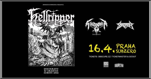 Thrash/black metalová mašina HELLRIPPER se řítí na Prahu! Jedno z nejvýraznějších jmen současné extrémní metalové scény přiveze bleskurychlé riffy, blast beaty a syrové vokály, které zaplaví pražský klub Subzero temnou a chaotickou atmosférou. Jako speciální host vystoupí belgická senzace SCHIZOPHRENIA a v roli supportu se představí švédští SARCATOR.