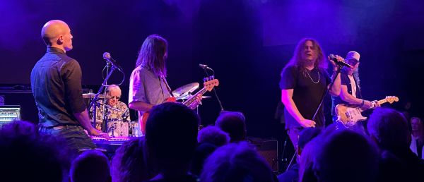 Fronta před klubem ukazovala, že prázdno nebude, i když tu bude za pár dní kapela znovu. Věkově šlo spíš o starší ročníky, ale nějaké mladé tváře byly také vidět. Není to samozřejmě jen o Paiceovi. Abyste tyhle věci zahráli a zazpívali, tak musíte být dobří hudebníci. PURPENDICULAR tvoří Britové Murray Gould (kytara), který hrával s Ericem Claptonem nebo Joem Bonamassou, a Nick Fyffe (baskytara) známý ze spolupráce s JAMIROQUAI. Za mikrofonem pak stojí Irčan Thomas Walsh a klávesy ovládá jediný neostrovan Alessandro Debiaggi pocházející ze slunné Itálie. PURPENDICULAR vydávají i vlastní desky a poslední „Banned“ (2025) vyšla letos. Ze čtrnácti songů večera byl ale pouze jeden původní, bluesově kývavá „No One´s Getting Out Alive“. Trochu škoda. Člověk se pak ptá, proč mají vůbec tendenci nějakou muziku psát, když ji ani nehrají živě. Ale veřejnost chce prostě slyšet DP a WS, takže takový setlist dává určitě větší smysl finančně. Kapela je zjevně s nálepkou nejznámějšího revivalu tmavé fialové spokojená, tak co…
