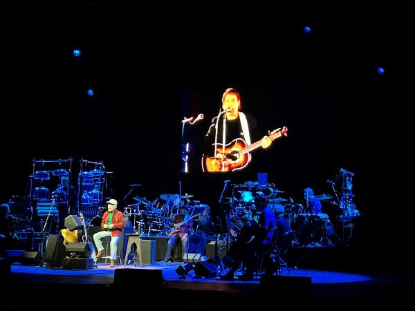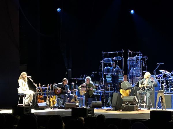 Po krátké přestávce přichází druhá část setu, kde zpěvák přebírá image typického amerického kluka, onoho „The Only Living Boy in New York“. Džíny, farmářské boty, košile, kšiltovka. Věkem už sice dědeček, ale srdcem stále klučina. Simon je jeden z těch šťastlivců, co nikdy nezestárnul. Začínáme na jeho poměry zostra. Svižnou „Graceland“ vítá celý sál potleskem, postupně se ale noříme víc do těch méně známých částí mistrovy diskografie a nezdá se, že by to publiku vadilo. Lidé jsou prostě rádi, že ho tu (tentokrát asi opravdu naposledy) ještě máme. Řadu písní navíc uvede vzpomínkami a historkami o jejich vzniku, takže nám je zarámuje a nakoupí nás i pro ty zaprášenější kousky. Pro Čecha zazněla ta vůbec nejzajímavější historka pouze první večer, kdy se Simon rozpovídal o svém improvizovaném vystoupení na Staromáku v roce 1990, kde si na popud Václava Havla půjčil kytaru od písničkářky Dáši Voňkové a zahrál „The Sound of Silence“, „The Boxer“ a „Bridge over Troubled Water“. Údajně jí tenkrát také ztopil kapodastr (pro nekytaristy: pomůcka, kterou posunujete ladění na hmatníku) a ten přítomné Voňkové během čtvrtečního večera po těch šestatřiceti letech zase vrátil. No, že by si někde nechával celé ty roky československý kapodastr, tomu se mi moc věřit nechce. 😊 Ale byl to milý a dojemný moment, který udělal určitě naší slavné kytaristce velkou radost. Jestli si někdo zaslouží pochvalu od takového umělce, tak právě ona…