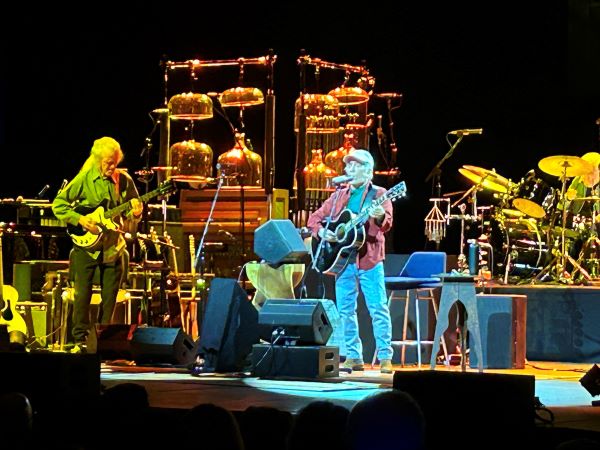 Já jako dlouholetý posluchač jeho diskografie můžu sebevědomě říct, že jsem znal všechny přehrávané kusy, a tak nějak mi bylo trochu jedno, co zahraje. Užil jsem si to, i když nepřivezl prakticky žádné mé oblíbené věci. Hitů bylo celkově jen pár a spíš v závěru večera, kdy se dostalo na „50 Ways to Leave Your Lover“, „Me and Julio Down by the School Yard“ a také „The Boxer“ a „The Sound Of Silence“, kterou jako obvykle zahrál Simon coby poslední přídavek jen sólo s kytarou a bez kapely. Už to samozřejmě tento čtyřiaosmdesátiletý pán vokálně (kytarově ano!) nedává tak dobře jako kdysi, což bylo patrné právě v tomto sólovém podání, kde se nemohl o nikoho dalšího opřít. Ale právě určitá křehkost a oprýskanost mistrova hlasu dodala jeho nejslavnější skladbě prožitek opravdovosti a hloubky zvýrazňující dopad onoho skvělého textu. A když mám srovnat zpěv napůl hluchého Simona se současným falešným krákoráním Iana Andersona, které jsme ve stejném sále zažili před časem, tak to může jít Simon dělat klidně z fleku sólistu v La Scale.