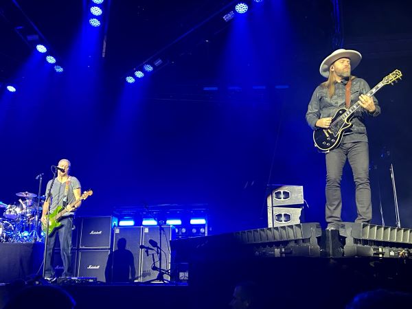 V O2 Universu ale nevystoupili jen VOLBEAT, přestože oni byli pro mě hlavním tahákem. Svou půlhodinku dostala nejdřív manchesterská ženská skvadra WITCH FEVER, ze kterých jsme viděli hlavně vokalistu Amy Walpole a basistku Alex Thompson, které se zhusta vydávali na molo do středu arény mezi diváky. Děvčata hrají jakýsi grunge/goth/punk/alternativní rock a bylo to celkem zajímavé, občas se zabrousilo i do divotvornějších rytmů a sebevědomí a pódiová prezentace jim také nechybělo. Nic pro mě, spíš pro kolegu Tomáše, ale těch pár desítek minut jsem si užil. Z Tomášova ranku byli také následující vystupující. Tentokrát dost slavná britská grunge legenda (?) BUSH. Na domácí poslech je to pro mě utahané a monotónní, i když pár favoritů u nich taky mám. Naživo ale dobré. Zpěvák-krasavec Gavin Rossdale je kvalitní frontman, který má zjevně koncertování rád a kontakt s publikem ho asi taky baví. Civilní projev, dobré hlasové rozpoložení i zajímavý způsob tance/poskakování. V jednu chvíli se i vydal do publika a jednu z písní prozpíval a protančil nejdřív pod pódiem a pak na tribunách. Takhle vypadá správné zaujetí a kdo to viděl, tak určitě nezapomene.